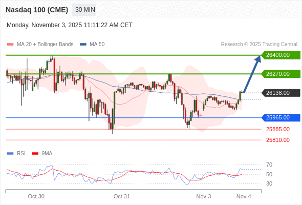 在 25965.00 之上,看涨,目标价位为 26270.00 ,然后为 26400.00 。