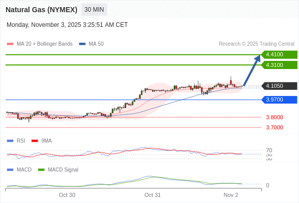 看涨,当 3.9700 为支撑位,目标定在4.4100。